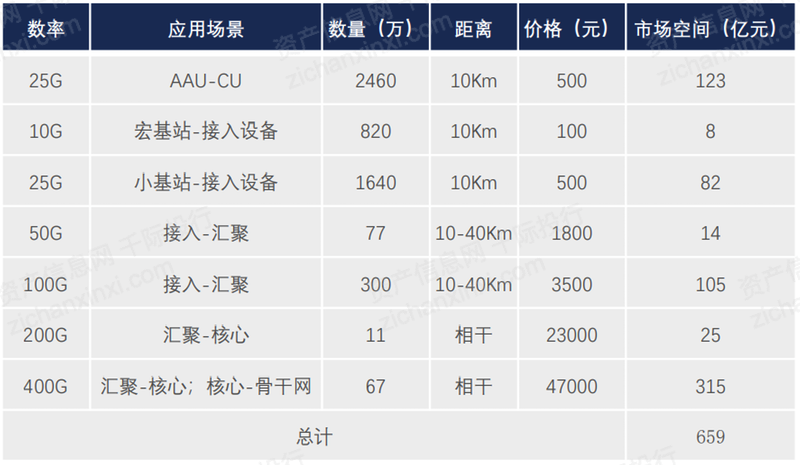 表:5G光模塊市場規(guī)模預(yù)測(單位:億元)
