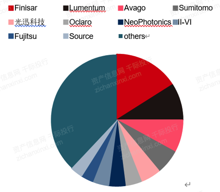 全球競爭者主要有Finisar(FNSR)、應(yīng)用光電公司Applied Optoelectronics(AAOI)、NeoPhotonics(NPTN)、Acacia Communications(ACIA)、Oclaro(OCLR)等。