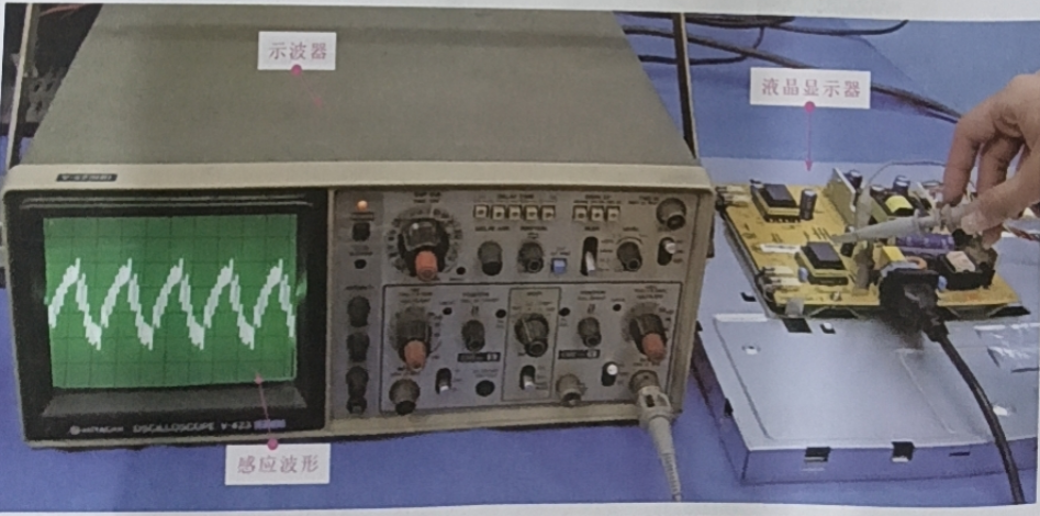 在檢修顯示器的主電路板時,可使用示波器檢測主電路中輸出的信號波形,根據(jù)信號波形進(jìn)行檢修和判斷。用示波器檢測逆變器電路中升壓變壓器外圍輻射的信號波形,如圖所示。