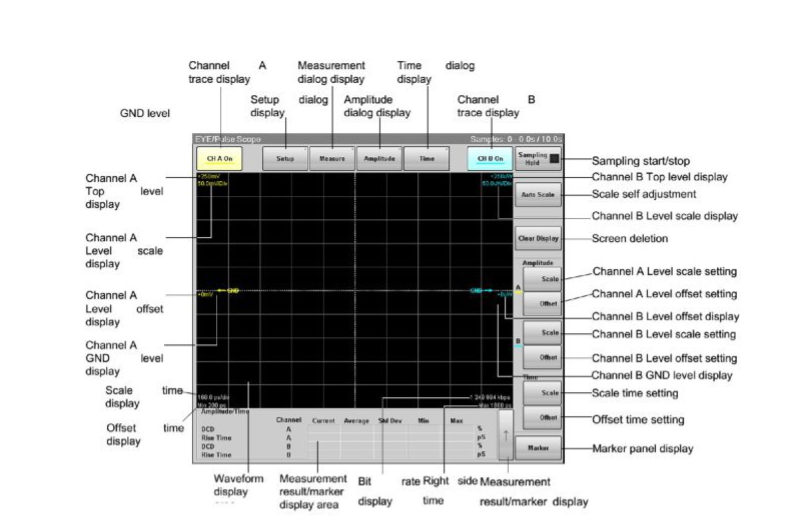 在儀表操作界面的頂端菜單上選擇 EYE/Pulse Scope, 可以打開眼圖界面, 如圖。