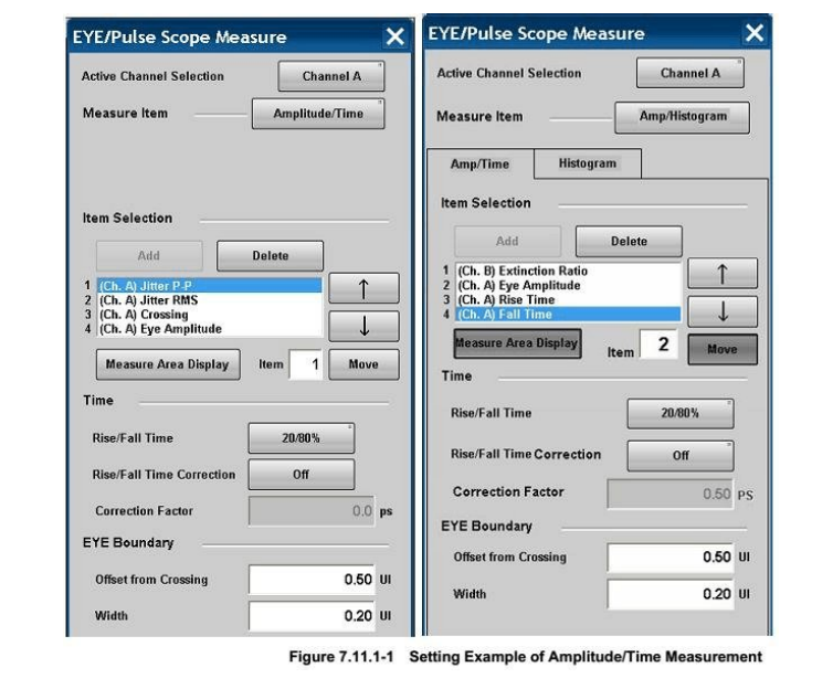 在眼圖顯示窗口 點(diǎn)擊 Measure 打開眼圖測(cè)試參數(shù)及眼圖模板余量等相關(guān)設(shè)置( 注意要選擇相對(duì)于的