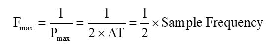 頻譜中的最高頻率分量與緩沖區(qū)中采樣點之間的時間間隔有關。至少,我們需要在一個周期內測量兩個V(t)點來計算該頻率分量的幅度和相位的值。這意味著我們可以計算的最高頻率正弦波的周期是時間間隔的兩倍,或Pmax = 2 x T。