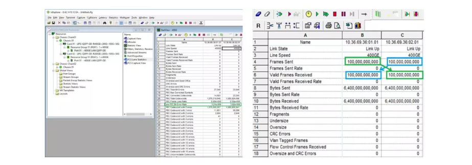 其測(cè)試方法如下:在數(shù)據(jù)流量測(cè)試儀上發(fā)送64字節(jié)長(zhǎng)度連續(xù)數(shù)據(jù)幀,F(xiàn)EC修正前的BER值應(yīng)小于2.4e-4;在流量測(cè)試儀上運(yùn)行以太網(wǎng)流量測(cè)試軟件,并發(fā)送64字節(jié)長(zhǎng)度、100%線速率的數(shù)據(jù)幀,累積至少1e+12個(gè)數(shù)據(jù)幀后,讀取端口的Frame Loss Ratio值應(yīng)小于6.2e-11;在流量測(cè)試儀上進(jìn)行FEC后單個(gè)或多個(gè)(<15個(gè))的誤碼注入,并驗(yàn)證經(jīng)FEC后的誤包率滿足802.3bs的規(guī)范要求;在流量測(cè)試儀上對(duì)速率進(jìn)行100ppm的調(diào)整,并驗(yàn)證誤碼率和誤包率滿足802.3bs的規(guī)范要求。