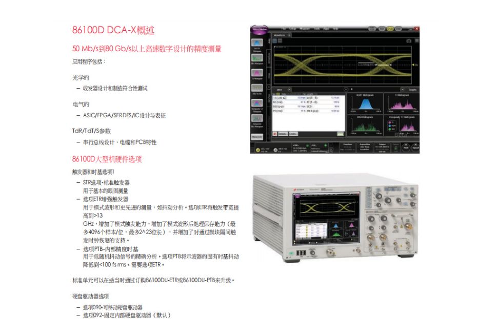 86100D有哪些特點(diǎn)?86100D是一款高性能的寬帶寬示波器,可以精確測(cè)量高速數(shù)字設(shè)計(jì)的波形特性和質(zhì)量。86100D有以下一些特點(diǎn):