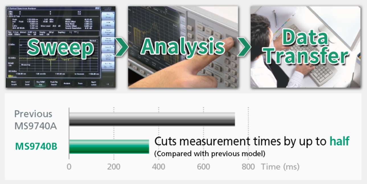 ?  高分辨率:MS9740B 的分辨率可以達到 0.01 nm(600 nm 到 950 nm),可以精確地測量光譜的細節(jié)。這對于評估頻譜寬度窄的光有源器件,如 FP-LD、DF-LD 等,是非常必要的。