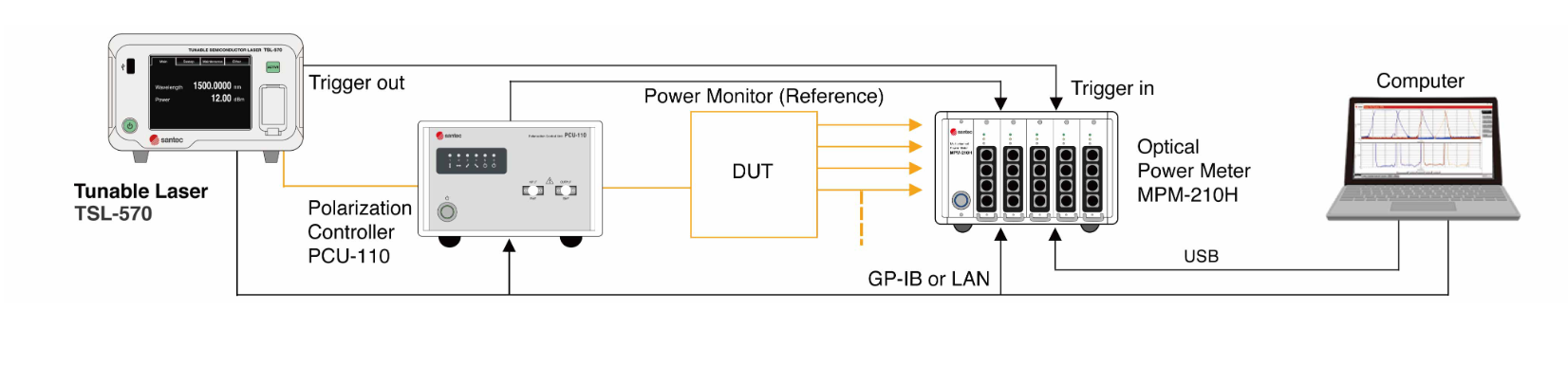 ?  光學(xué)器件掃描測(cè)試系統(tǒng):該系統(tǒng)由可調(diào)諧激光器、偏振控制器、光功率計(jì)以及相應(yīng)的軟件組成,可對(duì)IL/WDL/PDL等光學(xué)器件進(jìn)行測(cè)試,適用于R&D和產(chǎn)線。該系統(tǒng)通過實(shí)時(shí)校正和穆勒矩陣法提供高精度的IL/WDL/PDL分析。