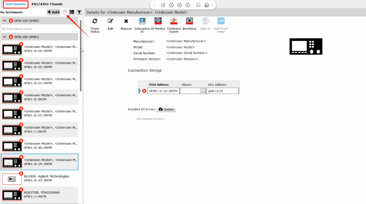 3.打開“FlexDCA軟件”軟件,找到“Instruments”,點擊刷新按鈕即可