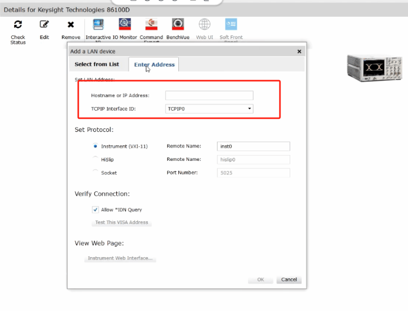 ?  Keysight IO Libraries Suite軟件:這是一款通用的儀器驅(qū)動和通信軟件,可以幫助您識別和配置86100D等Keysight儀器。該軟件可以為86100D分配一個VISA地址,以便通過USB或LAN進行通信。