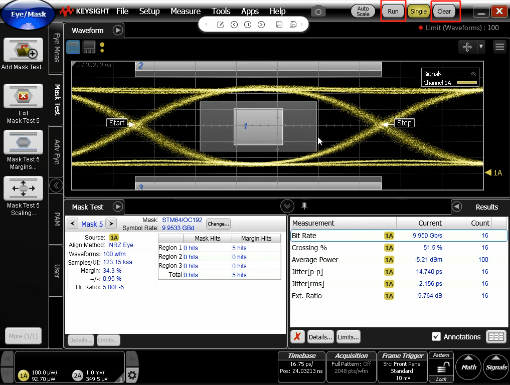 Hit Count:嚴(yán)格模式,不允許眼圖在Margin陰影有散點。