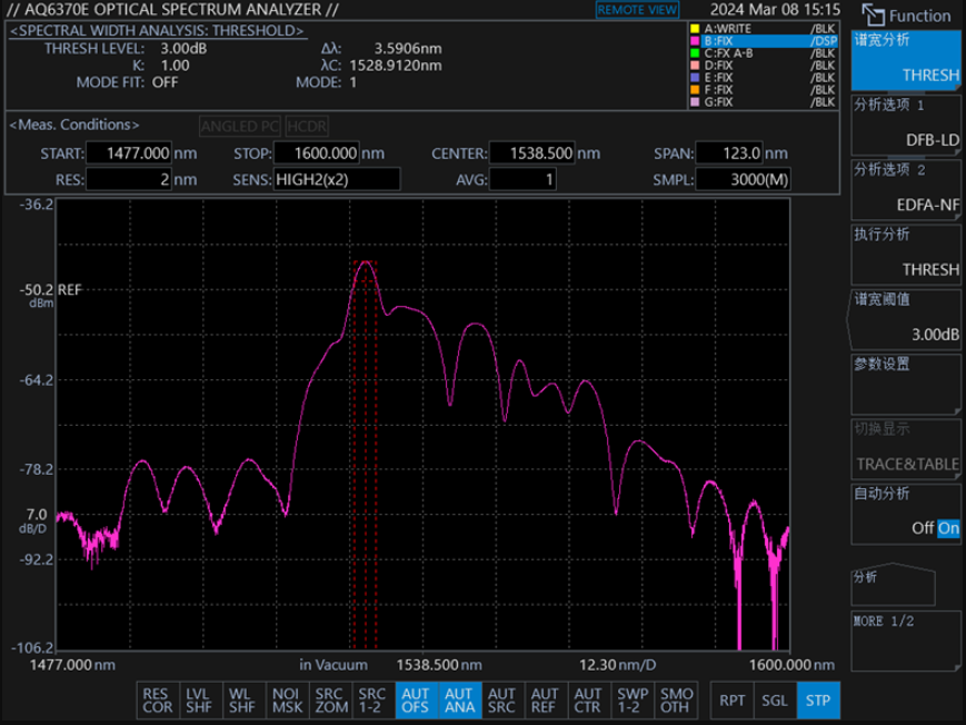 一般情況下,橫河OSA的自動(dòng)分析設(shè)置默認(rèn)為關(guān)閉狀態(tài),用戶需在完成光譜掃描后點(diǎn)擊相應(yīng)分析功能方可執(zhí)行分析操作;待開啟自動(dòng)分析功能后,設(shè)備將在每次掃描完成后執(zhí)行分析,并將分析結(jié)果呈現(xiàn)至屏幕上方。