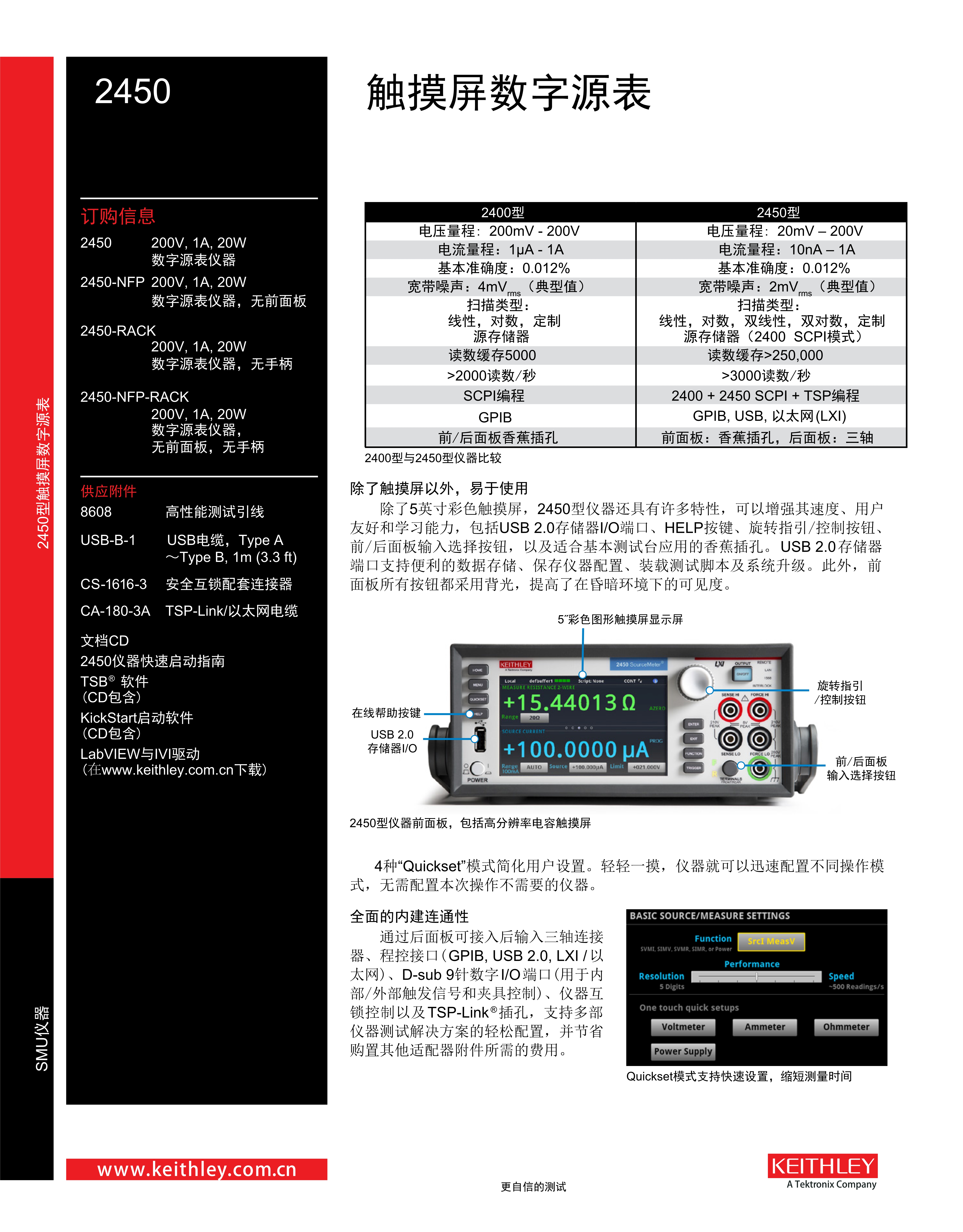 吉時(shí)利2450產(chǎn)品是一款高性能的數(shù)字源表,具有以下特性: