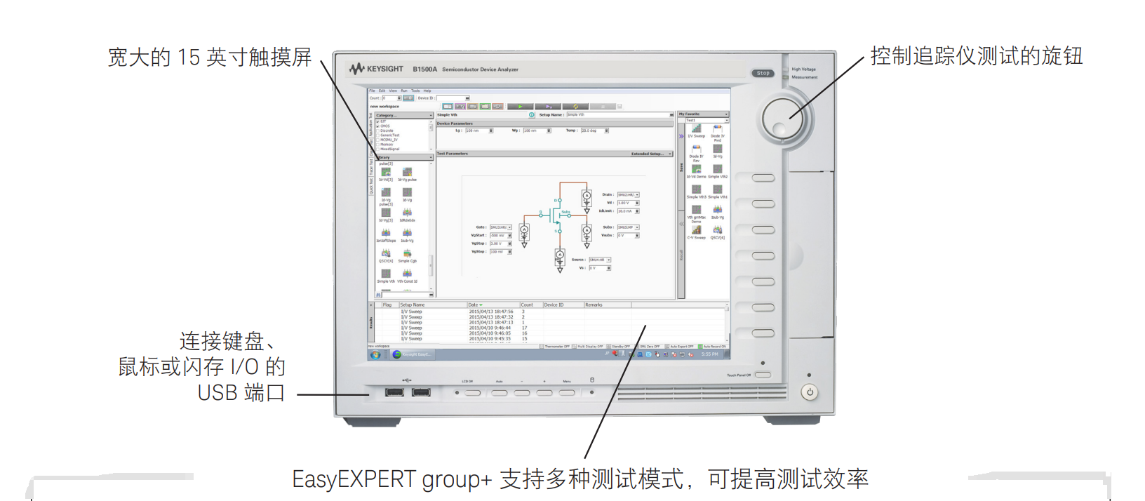 EasyEXPERT group+軟件:B1500A配備了基于嵌入式Windows 10平臺(tái)的居民GUI(圖形用戶界面)軟件,即EasyEXPERT group+,支持高效且可重復(fù)的設(shè)備表征。
