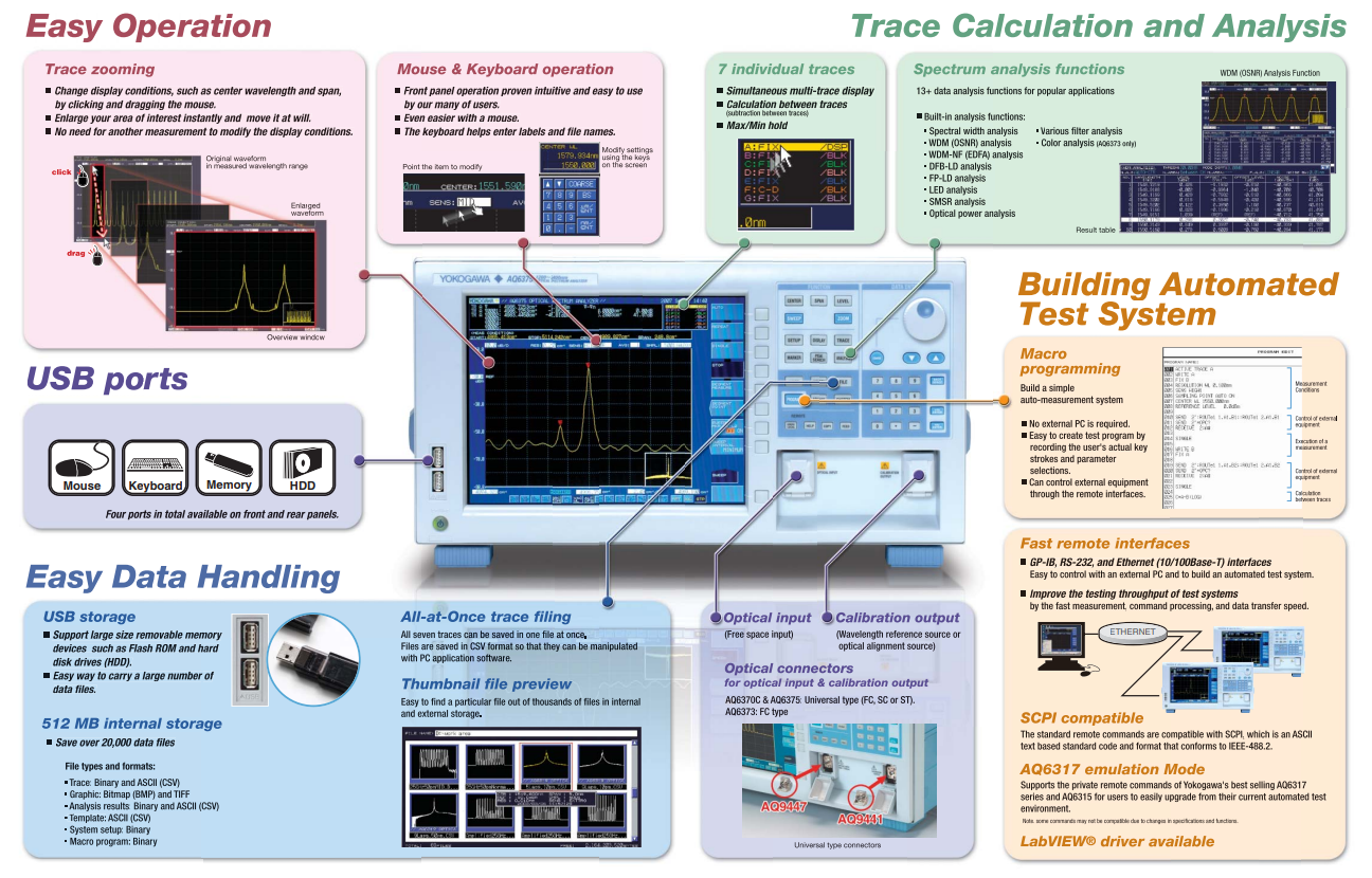 操作直觀性:經(jīng)過多年的用戶意見反饋,AQ6370C的前面板操作變得更加直觀和易于操作。鼠標(biāo)功能的加入使得導(dǎo)航更加方便,同時(shí)鍵盤可以用來輸入數(shù)字和文件名,提高了使用的便捷性。這一點(diǎn)也得到了其他用戶的證明,他們認(rèn)為前面板操作直觀且易于使用。