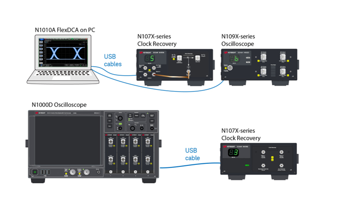 在自動(dòng)測(cè)試系統(tǒng)環(huán)境中,通過LAN將主測(cè)試系統(tǒng)PC連接至低成本的電腦上,F(xiàn)lexDCA界面駐留在第二臺(tái)PC上。然后,第二臺(tái)PC通過USB連接至N1092A。