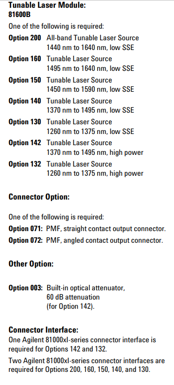 選件142和132:具有單個(gè)高功率輸出端口,其中選件132覆蓋1260nm至1375nm的波長(zhǎng)范圍。